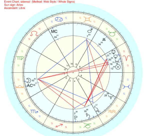 The Libra Moon is opposite Uranus in Aries. We may experience sudden changes in our emotions, which will impact relationships. There is a desire to rebel against the status qup and initiate new innovative projects. Uranus in Aries is quick impulsive action, and can lead us to be foolish, accident prone if the energy is not channeled properly.