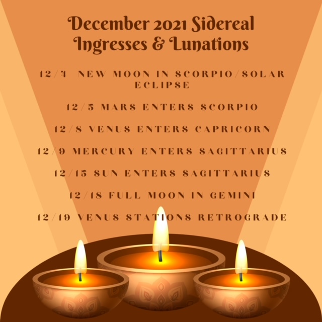 December 2021 Sidereal Lunations & Ingresses
