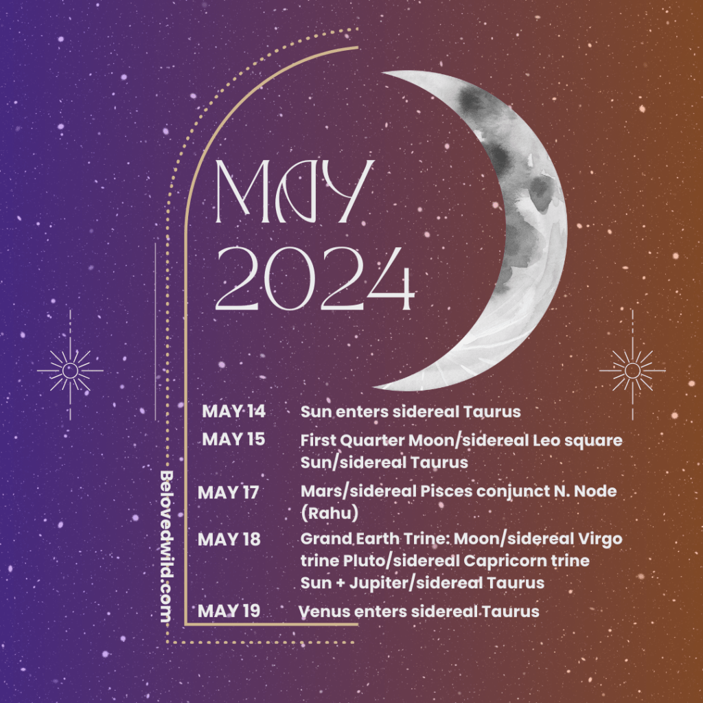 This astrology of this week centers around the energetic shift from sidereal Aries to Taurus. Aries energy is fast and impulsive, Taurus is slow and methodical. Aries wants to start something, Taurus wants to make it last. Jupiter moved into sidereal Taurus on May 1, bringing expansion of material resources, comfort and luxury – especially through travel, advanced knowledge and the law. With the Sun entering Taurus and joining Jupiter this week, our awareness and conscious energy is focused on what we have/possess, particularly things that have value. For many of us, Taurus represents money because we live in a capitalist society, with cash ruling everything around us. For others though, Taurus season can bring a focus on other important matters – such as work, family or friends. Look to the house occupied by Taurus in your sidereal natal chart for insights into which matters Taurus season will bring into focus.